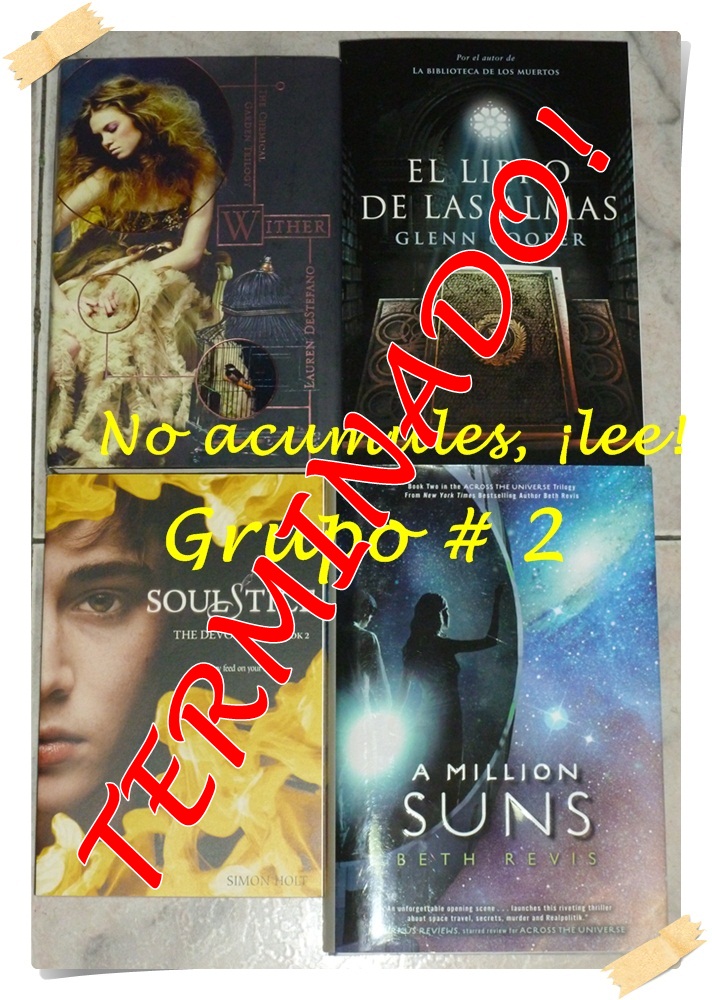 Mi única variación del reto es que no estoy comprando nuevos después de terminar un grupo. Hoy tengo un mes sin comprar libros, todavía mantengo mi promesa de no comprar más hasta julio. Me la paso haciendo listas y agregando al carrito de compras para cuando llegue el día comprar todos esos tesoros que estoy esperando, quiero concentrarme un poco más en el género adulto ya que lo he abandonado un poco por el juvenil. Definitivamente no pienso dejar el juvenil pero voy a mezclar más.